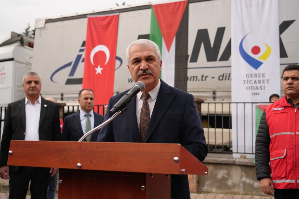 Kocaeli Valiliği’nin himayelerinde, Gebze Ticaret Odası tarafından hazırlanan insani yardım tırları, Türk Kızılayı Gebze Şubesi’nin lojistik desteğiyle Gazze’ye ulaştırılmak üzere yola çıktı.