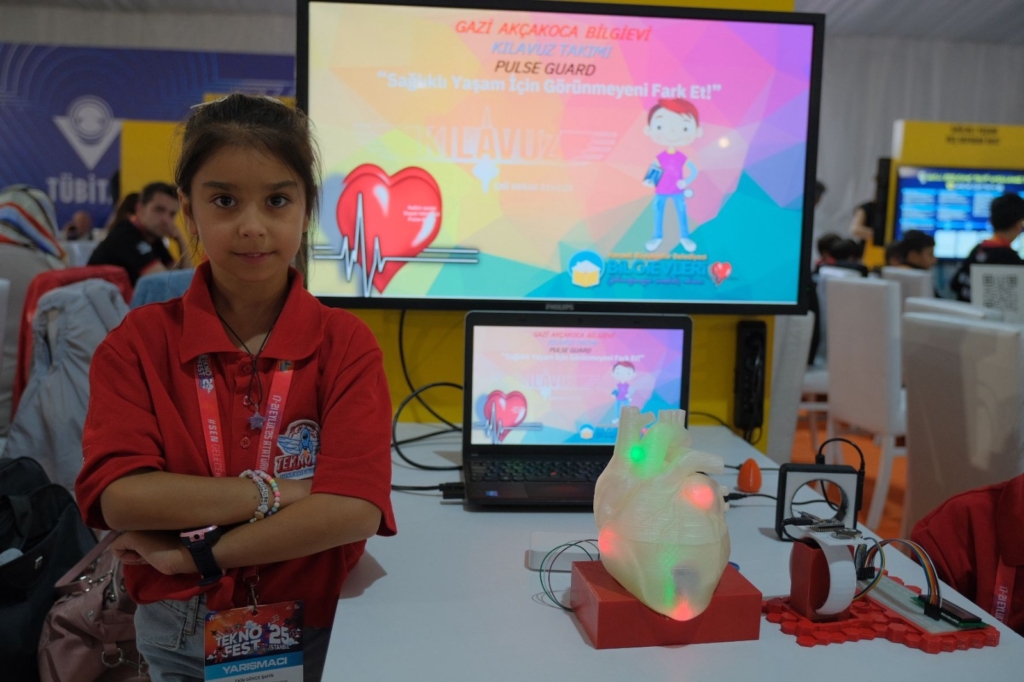 Gazi Akçakoca Bilgievi Kılavuz takımı tarafından tasarlanan Pulse Guard projesi TEKNOFEST 2025 Uluslararası Bilim Yarışması ‘sağlıklı yaşam’ kategorisinde 86.55 puan ile Türkiye 9’uncusu oldu. Gazi Akçakoca Bilgievi Bilişim Eğitmeni Yeşim Yalçın ve ilkokul 4. sınıf öğrencileri Yağmur Acar ile Ekin Gökçe Şahin tarafından tasarlanan ‘Sağlıklı yaşam için giyilebilir teknolojiyle akıllı stres takip cihazı’ bireylerin nabız, oksijen ve stres düzeylerini takip edebileceği, HRV analizi yapabilen giyilebilir teknolojilerle geliştirilen akıllı bir takip cihazı olarak öne çıkıyor.