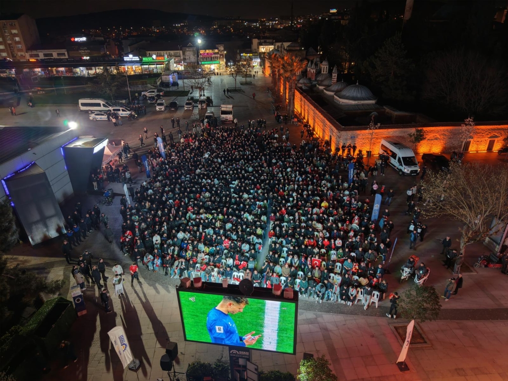 Maç boyunca heyecanın bir an olsun düşmediği meydanda vatandaşlar, A Milli Takım’a tezahürat ve dualarla destek verdi. Kerem Aktürkoğlu’nun attığı golle öne geçen Bizim Çocuklar, üstünlüğünü maç sonuna kadar koruyarak 24 yıl aradan sonra Dünya Kupası bileti alarak hasreti sona erdirdi.